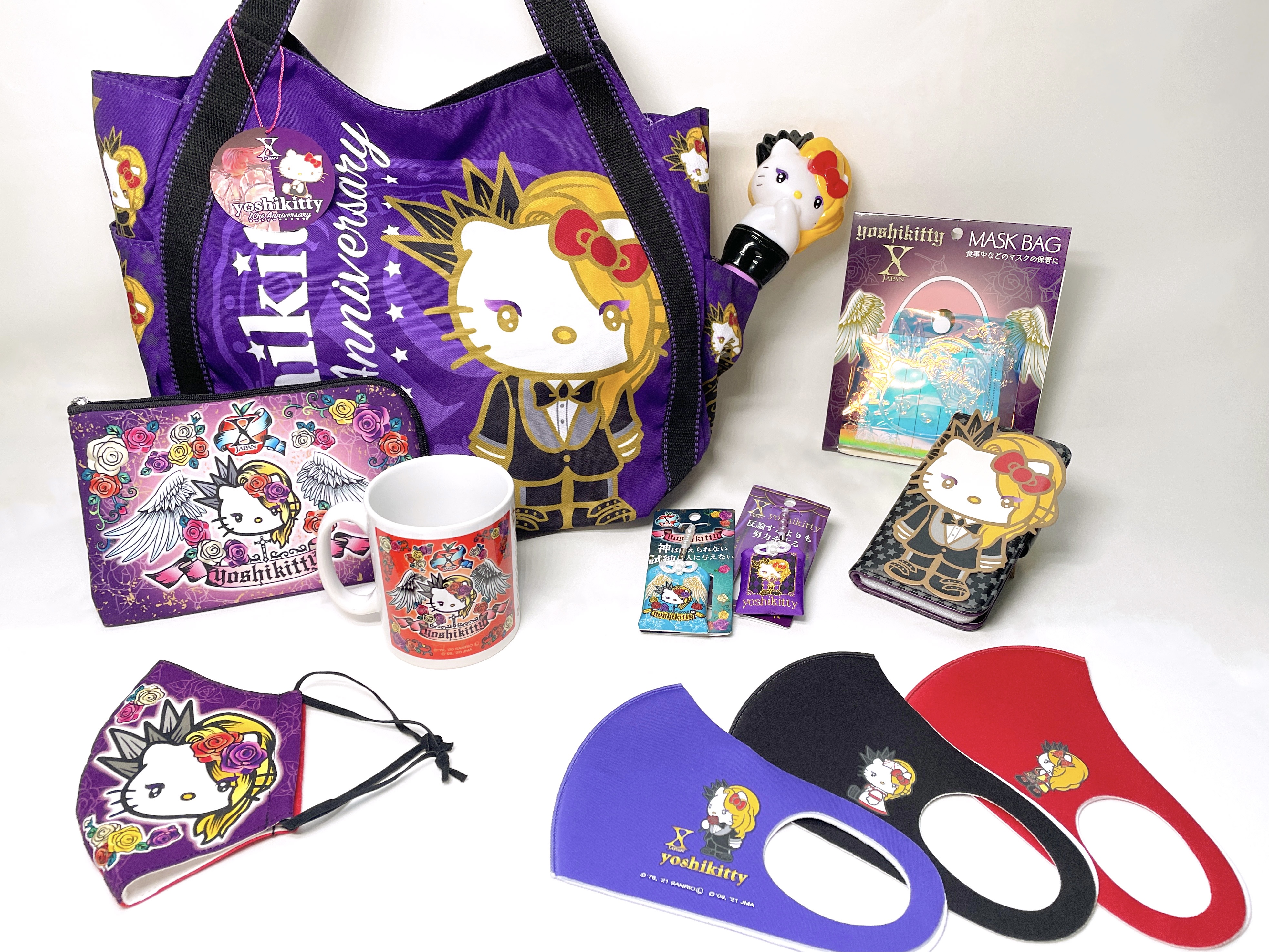 2009年5月、第一弾のコラボ商品は、東京ドームでの「X JAPAN WORLD TOUR Live in TOKYO」にて限定先行販売され、発売と同時に完売。ハローキティがハードな衣装とメイクで大変身したyoshikittyは、たちまち話題となり、その後オンラインショップにて追加販売するも即日完売という大人気アイテムに。